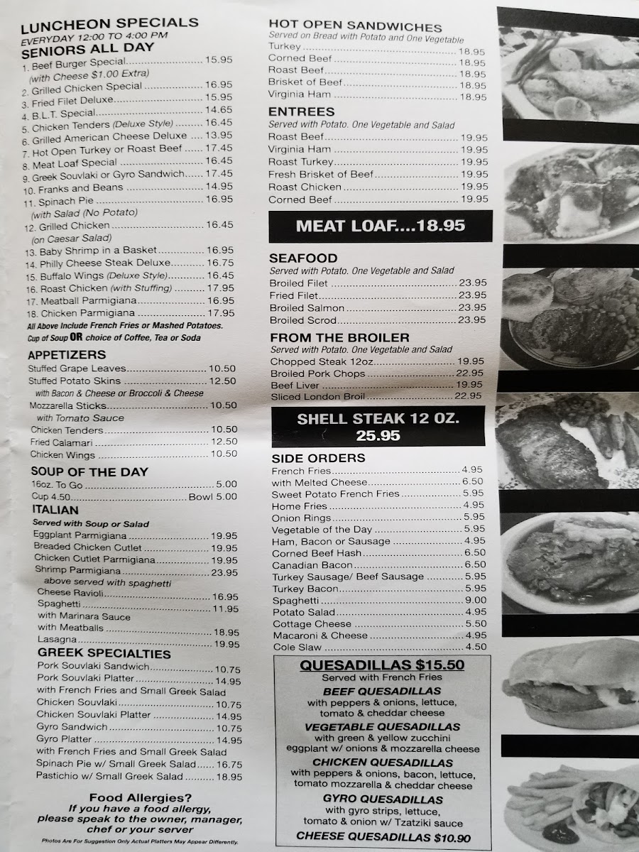 “ BEST DINER in the neighborhood! Owners Spiro & Kathy make the place feel like home. My waitress was named Manoli and she was a sweetheart. I had the Grilled Chicken and it was juicy and delicious. Cleaning staff (a young kid named Chris) was also on top of everything and had the place looking spotless. Cannot recommend this place more! ”